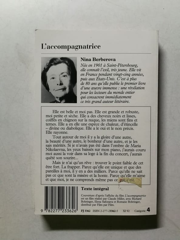 Coffret de l'éditeur réunissant 5 traductions de romans de l'écrivaine russe Nina Nikolaevna BERBEROVA (1901-1993): 1/"L'Accompagnatrice" traduit par Lydia CHWEITZER (1907-1994), 2/"Le Roseau révolté" traduit par Luba JURGENSON, 3/ "Le Laquais et la putain" traduit par Lydia CHWEITZER, 4/"Astachev à Paris" (en "version française établie avec le concours de l'aut[rice]"), 5/"La Résurrection de Mozart" traduit par Luba JURGENSON. Exemplaire bien complet de son coffret orné d'une photo de l'écrivaine.