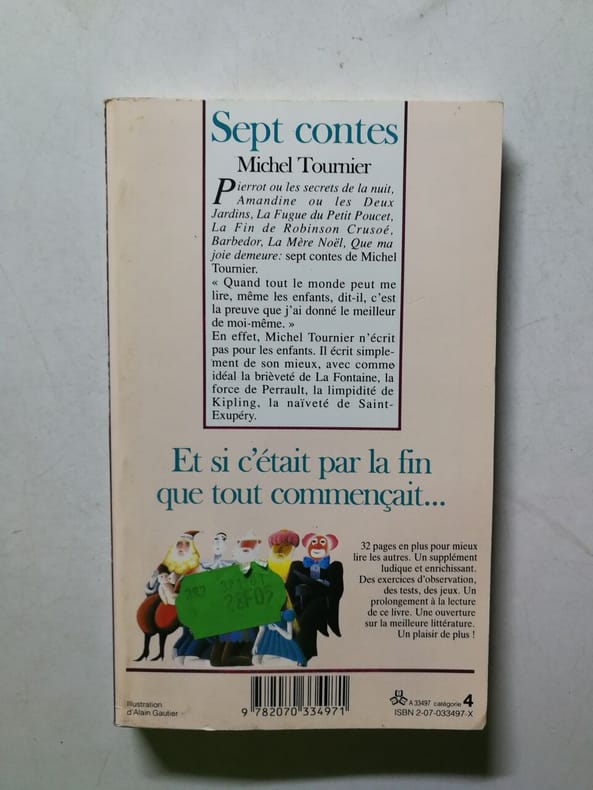 Première édition collective de ces contes parus dans "Le Coq de bruyère", "Pierrot ou les secrets de la nuit" et "Barbedor". Exemplaire enrichi d'un intéressant ENVOI autographe signé de Michel Tournier à son psychanalyste et ami Pierre Marty (1918-1993, membre de la Société psychanalytique de Paris, connu pour ses travaux sur la psychosomatique) : "en souvenir de sa première visite au presbytère [la résidence de Tournier à Choisel] et d'un entretien sur publicité et philosophie (voir page 24), en toute amitié, Noël 1984". Le conte "Pierrot ou les secrets de la nuit" oppose les couleurs bariolées et trompeuses du peintre en bâtiment Arlequin à la sincérité de celles, moins criardes, du boulanger Pierrot. Page 24 : "Colombine ! (...) Ne te laisse pas séduire par les couleurs chimiques et superficielles d'Arlequin ! Ce sont des couleurs toxiques, malodorantes et qui s'écaillent. Mais moi aussi j'ai mes couleurs. Seulement ce sont des couleurs vraies et profondes." Pierre Marty a ensuite confié le livre à sa fille, Catherine qui y a apposé son ex-libris manuscrit au premier feuillet blanc. Intéressante association. Bon exemplaire. Bon