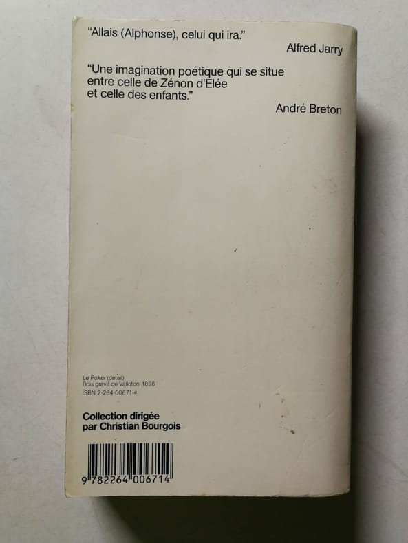 Paris Robert Laffont - Bouquins 1991 in 8 (19,5x13) 1 volume broché, couverture illustrée, XLIX et 1173 pages [2], petit cachet ex-libris sur le faux-titre. Alphonse Allais* Oeuvres anthumes: A se tordre; Vive la vie !; Pas de bile !; Le parapluie de l'escouade; Rose et vert pomme; Deux et deux font cinq; On n'est pas des boeufs; Le bec en l'air; Amours; Délices et orgues; Pour cause de fin de bail; Ne nous frappons pas; Le captain Cap. Collection Bouquins. Bel exemplaire ( Photographies sur demande / We can send pictures of this book on simple request )