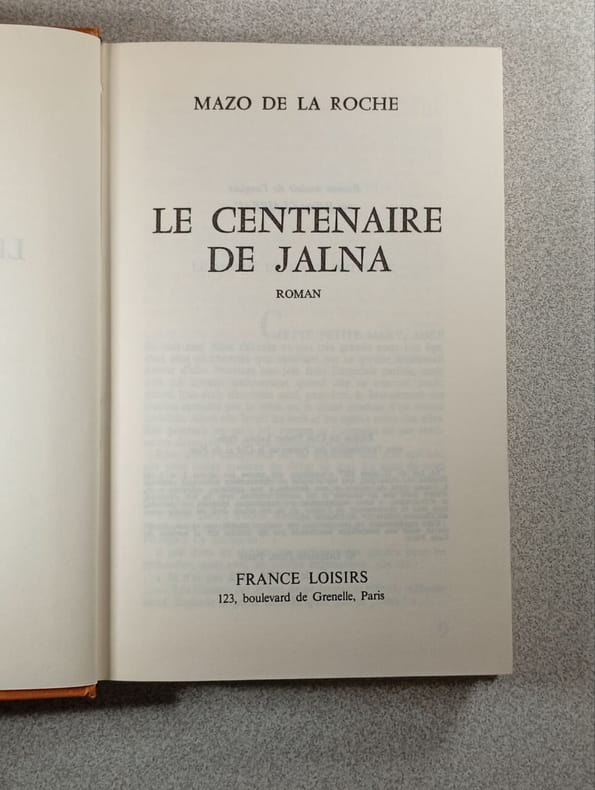 Librairie Plon 1958 1958. Quinzième volume de la saga des Whiteoak 'Le Centenaire de Jalna' est le dernier roman dans l'ordre chronologique de la série. Il évoque le souhait de Renny l'actuel maître du domaine de Jalna de voir la propriété retourner entre les mains d'une Adeline et d'un Philip après sa mort perpétuant ainsi la lignée familiale