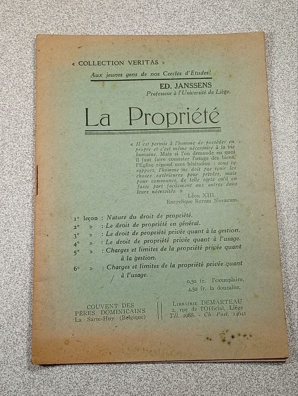 Paris, Editions du seuil - collections esprit, 1945; in-12, 1531329 pp., br. Broché bon étatChapitres : Le conflit de la propriété - Le code civil générateur du conflit - Le code et le droit romain - Propriété et Ancien régime - L'esprit du code - La propriété mobilière - Propriété et possession - Propriété et mystique - Anarchie de la propriété du code - Analyse externe - Analyse interne - Variabilité de la propriété - Statut des communautés - Propriété et communautés quelques rousseurs sur les couverture, papier uniformement bruni.