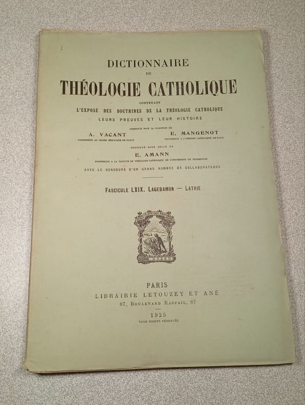 LEOUZEY ET ANE. 1925. In-4. Broché. Etat d'usage, Coins frottés, Dos très frotté, Intérieur acceptable. Paginé de 2450 à 2686. Texte sur 2 colonnes.. . . . Classification Dewey : 240-Théologie morale et spirituelle