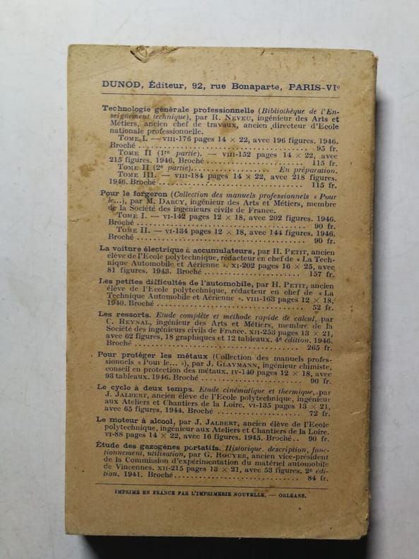 Dunod 11,5 x 18 Paris 1939 Broché, XIV-222 p. Index. Nombreux schémas. Couverture un peu salie, mais solide exemplaire. (C125)