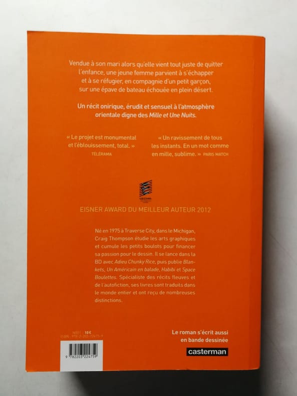 CASTERMAN 2021 672 pages 14 2x19 8x4 7cm. 2021. Broché. 672 pages. Habibi est un roman graphique de Craig Thompson qui raconte l'histoire de Dodola et Zam deux enfants esclaves qui fuient et trouvent refuge dans le désert. Leur relation évolue au fil des années mêlant amour survie et quête d'identité dans un monde marqué par la violence et les traditions