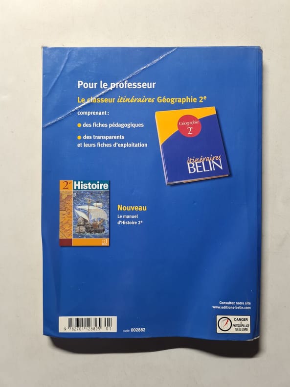 BELIN. 2001. In-4. Broché. Etat d'usage, Couv. légèrement passée, Dos satisfaisant, Intérieur frais. Environ 130 pages (manque environ 30 pages). Premier plat illustré en bleu et blanc.. . . . Classification Dewey : 372.89-Livre scolaire : histoire / géographie