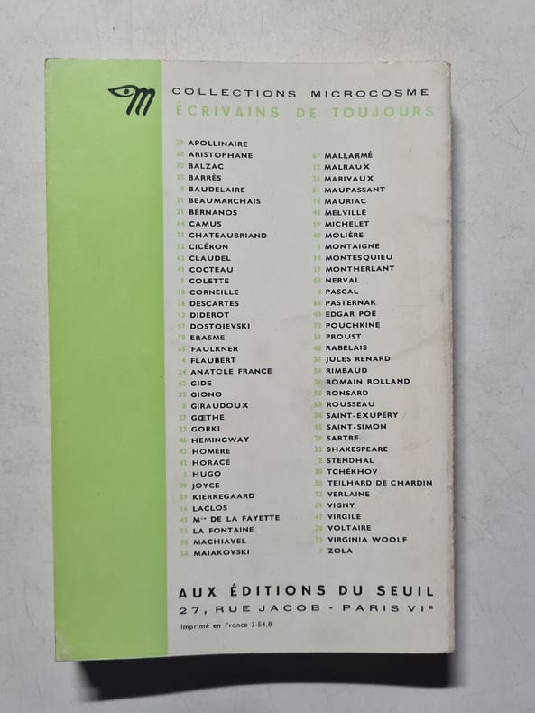 Paris, Seuil (coll. "Ecrivains de toujours"), 1954. Pt. in-8°, 191p. Broché, couverture illustrée.