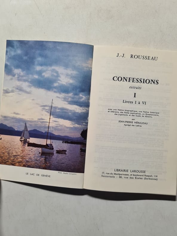 Les œuvres diverses - Nouvelle édition – Revue, corrigée, & augmentée de plusieurs morceaux qui n’avoient point encore paru – Neuchatel, sn, 1764 à 1779 - 10 vol. T1 à 10 – Page de titre noire et rouge sauf T6, 7,8 et 10 - T1, 1764 – iv, 421 pp, 1 frontispice ; T2, 1764 – 447 pp; T3, 1764 – 384 pp; T4, 1764 – 406 pp + 1 f. n. ch.; T5, 1764 – 288 pp, cxliij; T6, 1765 – 2 ff.n.ch,xlviij, 384 pp; T7, 1768 – 480 pp; T8, 1765 – 2 ff. n. ch., 440 pp – Erreur de typographie à la page 438 : 43 aulieu de 438; T9, 1764 - 3 ff. n. ch., 395 pp, 2 ff. n. ch. – Erreur de typographie p. de titre : Tome sixième au lieu de neuvième – Relié à la suite Rousseau juge de Jean Jacques- A Lichfield, Jackson, 1780 – 5 ff. n. ch., 1 f. blc, 150 pp, 1 f. n. ch. – E.O.; T10, 1779 – 1 f. n. ch., iv, 1 f. n. ch., 360 pp – Relié à la suite Relation ou notice des derniers jours de mons. Jean Jacques Rousseau; circonstances de sa mort; et quels sont les ouvrages posthumes, qu’on peut attendre, de lui : par mons. Le Begue de Presle, avec une addition relative au même sujet par J.H. de Magellan – A Londres, chez B. White, J. Johnson, P. Elmsy, W. Brown, 1780 – 48 pp – E.O.La nouvelle Héloise, ou lettres de deux amans, Habitans d’une petite ville au pied des Alpes – Nouvelle édition, revue, corrigée & augmentée de figures en taille douce, & une table des matières – 2nde édition - Neuchatel/Paris, Duchesne, 1764 – 4 vol. T11 à 14 - T1, 1 f. n. ch., front., 408 pp, 2 grav.; T2, 2 ff. n. ch., 405 pp, 4 grav.; T3, 2 ff. n. ch., 432 pp, 3 grav.; T4, 2 ff. n. ch., 378 pp + 32 pp supplément à la Nouvelle Héloise, 3 grav. (mque 1 serpente)Emile, ou de l'éducation La Haye (Paris), J.Néaulme, 1762 - 4 vol. T 15 à 18 page de titre noire et rouge L'édition de Paris est certainement la première; elle se vendait 18 livres avant l'arrêt du Parlement, et on la trouvait chère; mais quand vinrent les persécutions, malgré les nombreuses réimpressions de l'ouvrage, il fut si recherché, qu'on croyait le payer bon marché en en donnant 40 ou 50 livres... o. (mémoires de Favart. tome 11, p. 10.) – 5 figures par Eisen 1 front. + 4 gravures – Ici manque gravure T1 - T1, 1 f. n. ch., frontispice, viii, 1 f. n. ch., 466 pp, 3 ff, n. ch.; T2, 2 ff. n. ch., 407 pp, 1 grav. ;T3, 2 ff. n. ch., 384 pp, 1 grav. ; T4, 2 ff. n. ch., 455 pp, 1 grav., 1 supplément 112 pp – Erreur de typographie à la p. 112 : 211 au lieu de 112Les confessions, suivies des Rêveries du promeneur solitaire - Genève, 1782 - 2 vol. T19 à 20 - Édition originale complète de la première partie des Confessions T1, 1782 – 2 ff. n. ch., 471 pp, Confessions Livre I à IV; T2, 1782 – 2 ff. n. ch., 279 pp, Confessions Livre VI à et 300 pp Promenades I à XEsprit et maximes, T21 - Neuchatel et en Europe, chez les libraires associés, 1764 – 464 ppLettres de la montagne, T22 - Amsterdam, Marc Michel Rey, 1764 – 2 vol. Reliés en un, 5 ff. n. ch., 334 pp, 1 ff. n . ch., 226 pp (sans les cartons) Erreur de pagination vol. 1, p 214 marquée 114