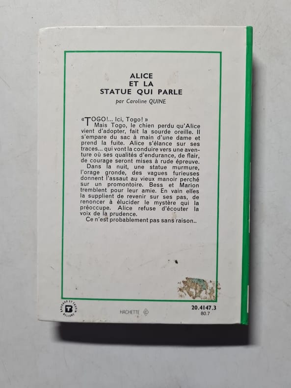 1974 1974. Caroline Quine: Alice et la statue qui parle/ Bibliotheque verte 1974