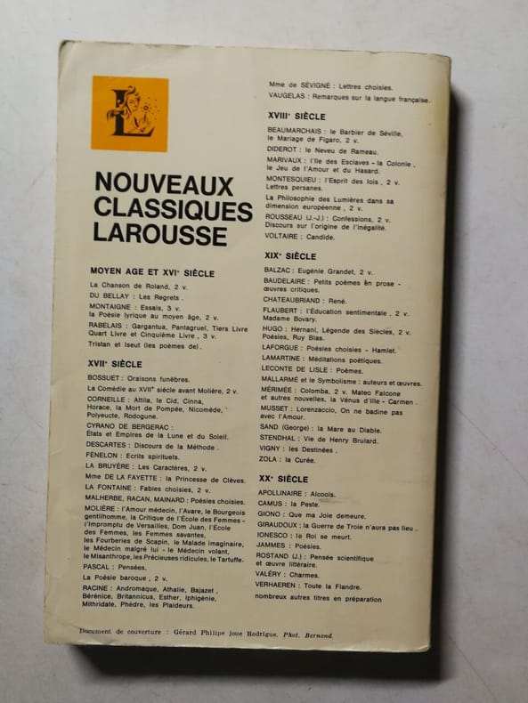 Larousse Sans date. Le Cid de Corneille est une tragédie classique du XVIIe siècle qui met en scène le conflit déchirant entre l'amour et l'honneur. Rodrigue amoureux de Chimène doit venger l'affront subi par son père en tuant le père de sa bien-aimée créant ainsi un dilemme insoluble. L'œuvre explore les tensions entre passion individuelle et devoir social dans le cadre de l'honneur castillan