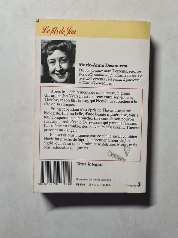 Denoël Broché 1957 Six volumes in-12 (14,5 x 20,5 cm), brochés, comprenant les romans suivants : Torrent (267pp, éd. 1957) ; Jan Yvarsen (251pp, 1958). Jan et Thérèse (276pp, 1958). Le Dernier amour de Jan (178pp, 1959). Le Fils de Jan (235pp, 1959). Le Destin des Yvarsen (191pp, 1959) ; pliures aux dos, coiffes et bords des plats frottés, mors du premier volumes réparés au ruban adhésif, état général moyen. Livraison a domicile (La Poste) ou en Mondial Relay sur simple demande.