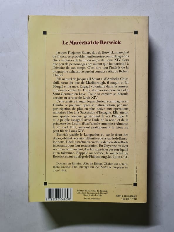 Albin Michel Sans date. Biographie du maréchal de Berwick personnage militaire important du XVIIIe siècle écrite par Alix Rohan Chabot et publiée par les éditions Albin Michel