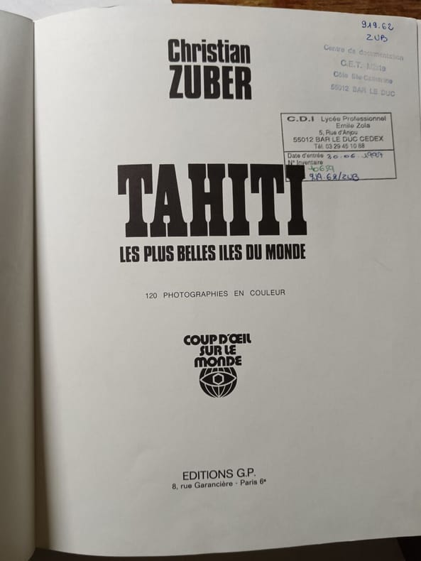 Editions G. P Sans date. Ouvrage illustré présentant Tahiti et ses îles à travers des photographies et des textes descriptifs mettant en valeur la beauté naturelle et culturelle de la Polynésie française