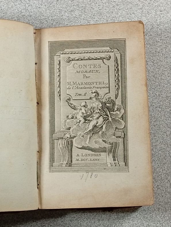 CHEZ NEE DE LA ROCHELLE. 1787. In-12. Relié plein cuir. Etat d'usage, Coins frottés, Coiffe en tête abîmée, Intérieur frais. 394 + 328 pages. Plein cuir marron, pièces de titres rouge et noire, titres et filets dorés. Tranches poivrées. Légers accrocs au dos du tome 3.. . . . Classification Dewey : 840-Littératures des langues romanes. Littérature française