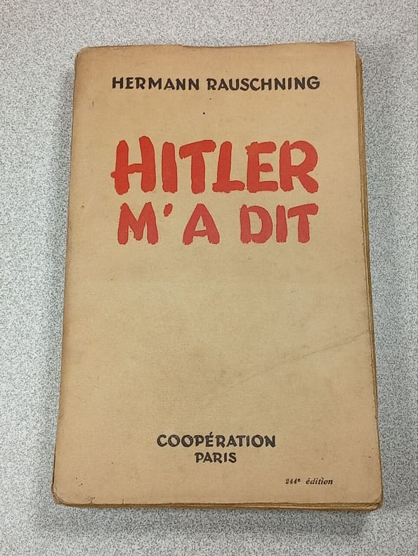 Confidences du Fuhrer sur son plan de conquête du Monde. Avant-propos de Marcel Ray. Traduit de l'allemand par Ambert Lehman. Classification Dewey : 943.086-IIIe Riech. Hitler, 1933-1845