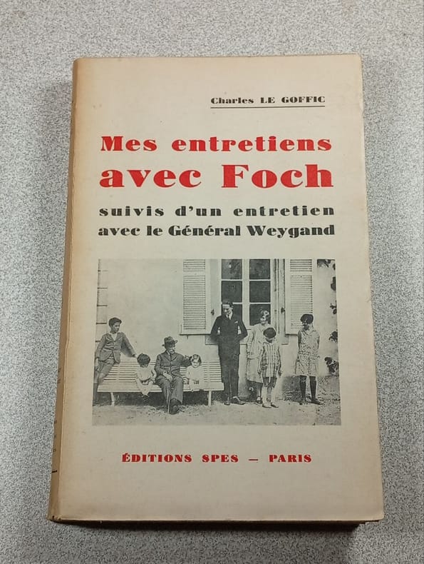 Editions Spes 1929, in-12 broché, 231 p. (plats de couverture et dos un peu défraîchis, sinon bon état) Paru aussitôt après la mort du maréchal, ces entretiens sont bien précieux pour éclairer la figure de celui que Le Goffic appelle "le grand fédérateur".