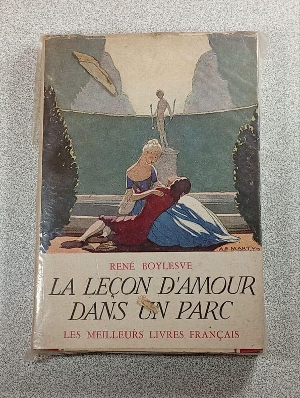Le 2ème texte est suivi de Gérard-Gailly: Interprétation de la Leçon d'amour dans un parc. Reliure légèrement frottée, quelques petites épidermures. Bon exemplaire, très frais intérieurement. (GrFC)