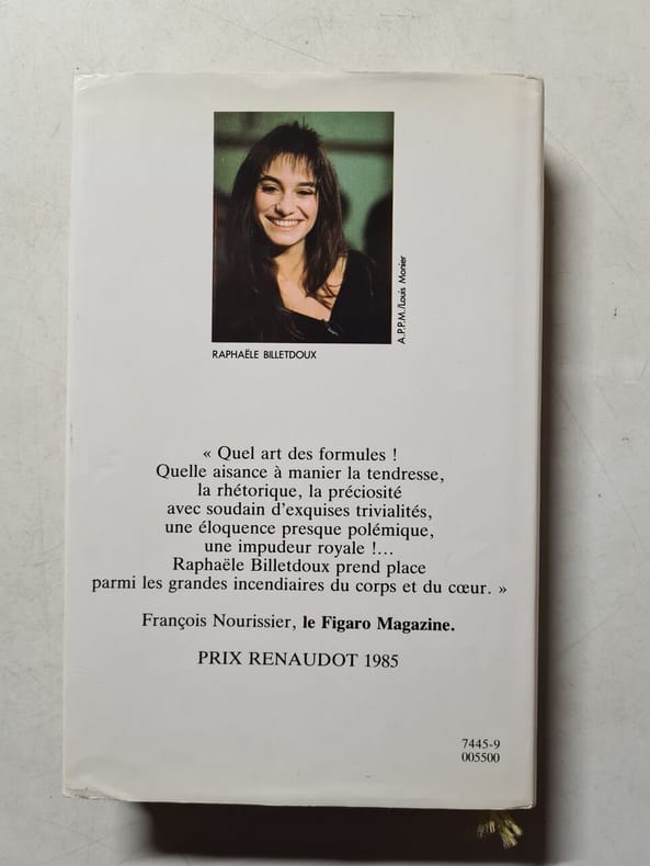 Paris, Bernard Grasset, (21 août) 1985. 1 vol. (130 x 205 mm) de 218 pp. et [3] ff. Broché. Edition originale. Envoi signé : "Pour Arlette Alteirac avec mes voeux de belle année Raphaële Billetdoux le 7.12.85".