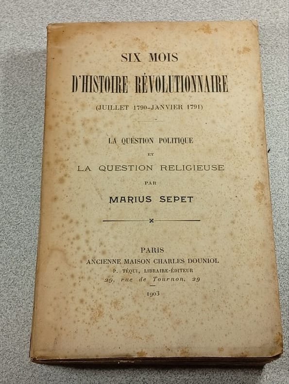 Ancienne Maison Charles Douniol P.Téqui. 1903. In-12. Broché. Etat d'usage, Tâchée, Dos abîmé, Papier jauni. VI + 384 pages - renfort adhésif sur le dos - annotation et gommette collée sur le dos - plats jaunis - tampon, étiquette sur la page de faux titre - annotation sur la page de titre.. . . . Classification Dewey : 944.04-Révolution de 1789