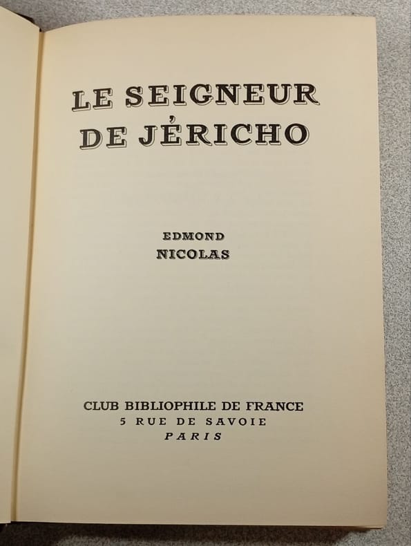1954 1954. Edmond Nicolas - Le Seigneur de Jéricho / Club du Bibliophile de France 1954