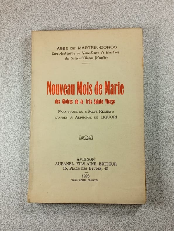 Aubanel Fils Aîné, Avignon. 1928. In-16. Broché. Etat d'usage, Couv. convenable, Dos satisfaisant, Non coupé. 150 pages. Etiquette de code sur la couverture. Quelques tampons de bibliothèque. 2e plat et derniers feuillets perforés, sans altération de la lecture.. . . . Classification Dewey : 232.91-Vierge Marie