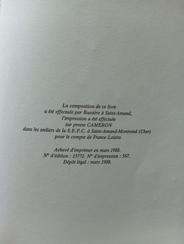 FRANCE LOISIRS / ALBIN MICHEL. 1988. In-8. Relié. Bon état, Couv. convenable, Dos satisfaisant, Intérieur frais. 269 pages.. Avec Jaquette. . . Classification Dewey : 840-Littératures des langues romanes. Littérature française