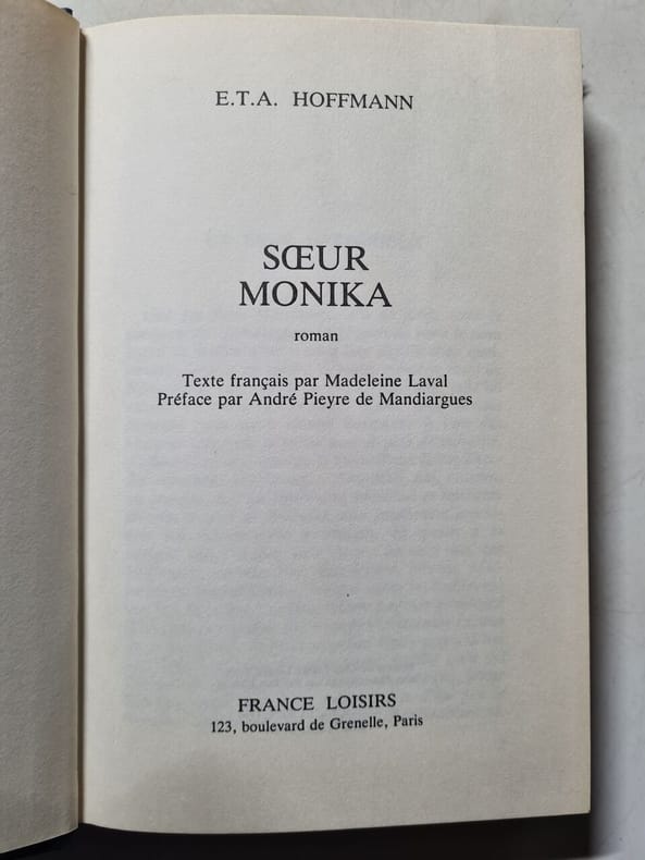 1984 1984. E.T.A. Hoffmann: Soeur Monika/ France Loisirs 1984 . E.T.A. Hoffmann: Soeur Monika/ France Loisirs 1984