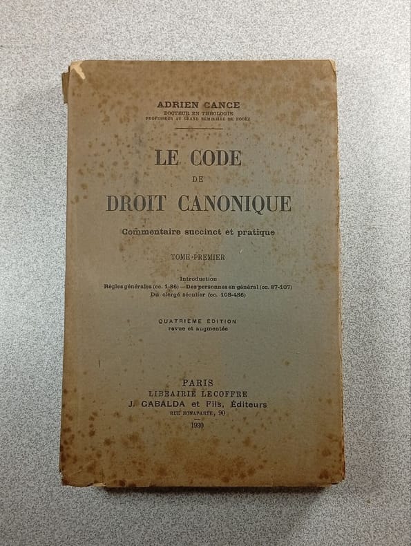 Librairie Lecoffre - J. Gabalda. 1927. In-12. Broché. Etat d'usage, 1er plat abîmé, Dos abîmé, Intérieur acceptable. 483 pages. Etiquette de code sur le dos. Tampons de bibliothèque en page de titre. Manques sur le dos. 1er plat fortement déchiré et se détachant.. . . . Classification Dewey : 262.9-Droit canonique