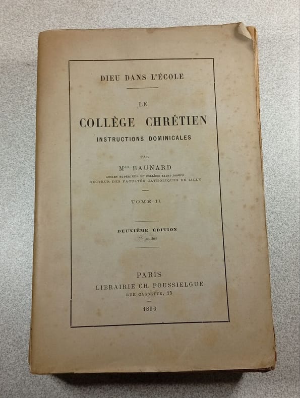 POUSSIEGLE FRERES. 1892. In-8. Relié demi-cuir. Etat d'usage, Couv. convenable, Dos à nerfs, Quelques rousseurs. XI + 562 pages - dos à 4 nerfs - plats et contre-plats jaspés - petit tampon et etiquette collée en debut d'ouvrage - petite etiquette collée sur le 1er plat - auteur, filet, titre, fleurons et tomaison dorés au dos.. . . . Classification Dewey : 200-RELIGION