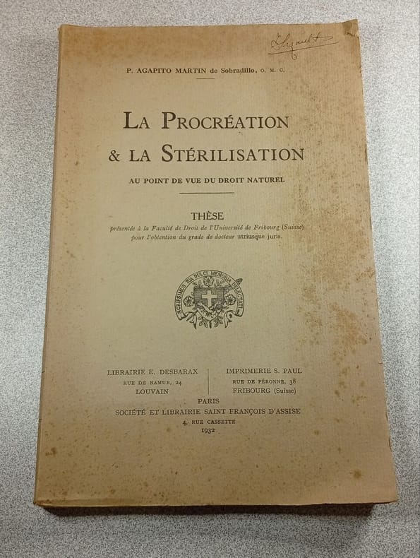 Paris, Société et librairie saint François d'Assise 1932 xvii + 131pp., Thèse présentée à la Faculté de Droit de l'Université de Fribourg (Suisse) pour l'obtention du grade de docteur utriusque juris, 25cm., br.orig., bon état, J90959