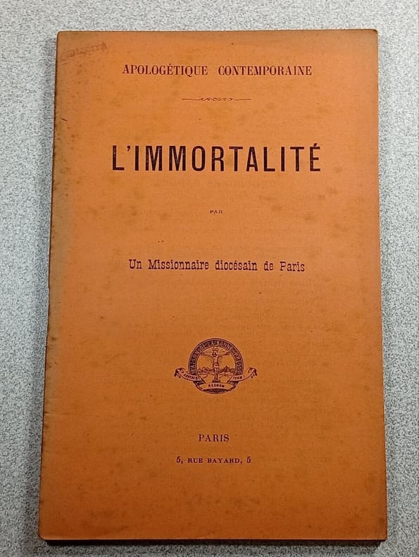 1ere édition, 1958 Contents, Chapitres : Introduction - 1. Raison et foi dans la connaissance de l'immortalité : Le problème de l'immortalité au temps de Descartes - Immortalité de nature et immortalité de fait - Doute hyperbolique et certitude vulgaire - 2. Raison et foi dans les promesses de béatitude : L'état de l'âme après cette vie, certitude et espérance - Immortalité et individualité - Conclusion : Sagesse cartésienne et religion - Bibliographie couverture à peine jaunie, avec d'infimes traces de pliures aux coins des plats, notamment au coin inférieur gauche du plat inférieur, la couverture reste en bon état, l'intérieur est frais et propre