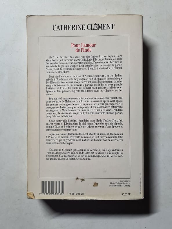 France Loisirs 1994 in8. 1994. Cartonné jaquette. le dernier des vice-rois des indes britanniques lord mountbatten est intronisé à new-delhi. lady edwina sa femme est l'une des grandes dames de l'aristocratie anglaise l'une des plus libertines et sans doute la plus émancipée. leur interlocuteur privilégié le pandit nehru vient d'être libéré de sa prison. bientôt il deviendra le premier ministre de l'inde libre. tout semble opposer edwina et nehru et pourtant entre l'indien rebelle à l'angleterre et la lady anglaise naît une passion impossible que lord mountbatten le mari accepte avec noblesse. ils se débattent dans les sanglants événements qui suivent le partage des indes en deux pays le pakistan et l'inde. en quelques semaines massacres religieux et épidémies font plus de cinq cent mille morts dans les villages et sur les routes. seul un vieil homme de soixante-quatorze ans a compris l'imminence de ce désastre. le mahatma gandhi mourra assassiné après avoir apaisé les guerres de religion de son pays mais aussi sans avoir pu empêcher le dépeçage des indes. quelques mois plus tard les mountbatten retournent en angleterre. mais l'amour continue entre edwina et nehru. pendant douze ans ils s'écrivent chaque nuit et vivent ensemble un mois par an. jusqu'à la mort d'edwina. cette incroyable histoire légendaire dans l'inde d'aujourd'hui fait entrer nehru et edwina dans le ciel magnifique des amants séparés comme titus et bérénice couple mythique au coeur d'une épopée et cependant nos contemporains. après la senora catherine clément aborde un moment d'histoire du xxe siècle un moment d'éternité. ce roman où tout est vrai réunit la folie meurtrière qui engendra deux nations et l'amour fou de deux êtres aussi tendres qu'héroïques