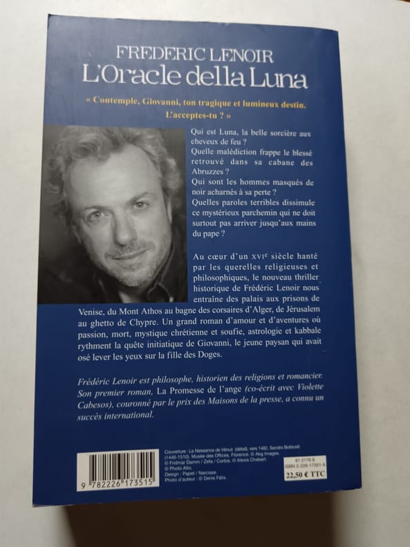 RESUME : Qui Est Luna, La Belle Sorcière Aux Cheveux De Feu ? Quelle Malédiction Frappe Le Blessé Retrouvé Dans Sa Cabane Des Abruzzes. Qui Sont Les Hommes Masqués De Noir Acharnés À Sa Perte ? Quelles Paroles Terribles Dissimule Ce Mystérieux Parchemin Qui Ne Doit Surtout Pas Arriver Jusqu'aux Mains Du Pape? Au Cour D'un Xvie Siècle Hanté Par Les Querelles Religieuses Et Philosophiques, Le Nouveau Thriller Historique De Frédéric Lenoir Nous Entraîne Des Palais Aux Prisons De Venise, Du Mont Athos Au Bagne Des Corsaires D'alger, De Jérusalem Au Ghetto De Chypre. Un Grand Roman D'amour Et D'aventures Où Passion, Mort, Mystique Chrétienne Et Soufie, Astrologie Et Kabbale Rythment La Quête Initiatique De Giovanni, Le Jeune Paysan Qui Avait Osé Lever Les Yeux Sur La Fille Des Doges. Classification Dewey : 843.081-Le roman historique