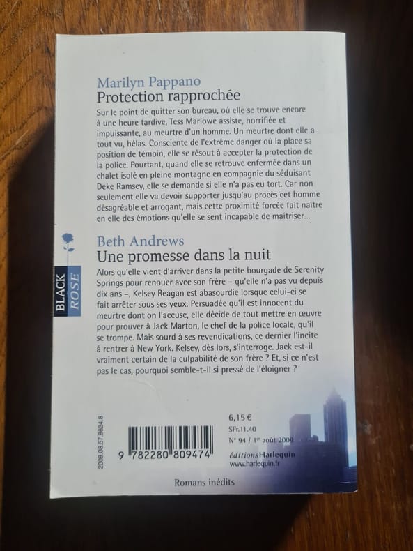 Harlequin Sans date. Roman sentimental mettant en scène une relation entre une personne protégée et son garde du corps où le devoir professionnel se heurte à l'attirance naissante dans un contexte de danger potentiel