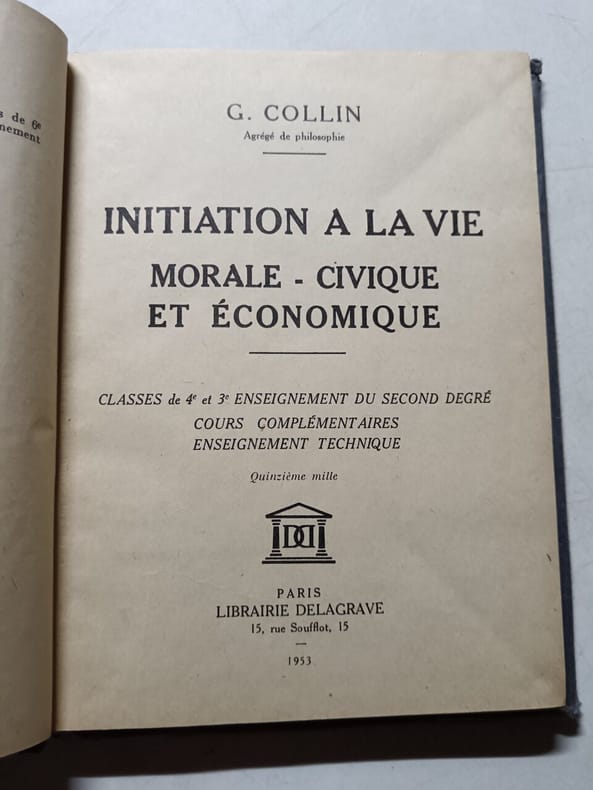 Librairie Delagrave Sans date. Manuel scolaire d'éducation civique et morale destiné aux élèves du primaire publié par la Librairie Delagrave au début du 20e siècle. Il aborde les principes de vie en société les devoirs du citoyen et des notions économiques de base dans une perspective républicaine et laïque