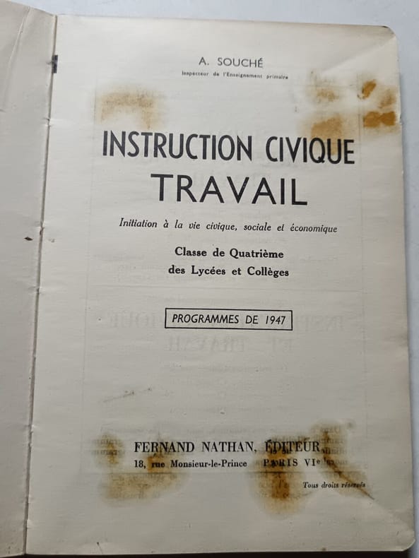 Fernand Nathan Éditeur Sans date. Manuel scolaire d'instruction civique publié par les éditions Fernand Nathan probablement destiné à l'enseignement des principes civiques et des valeurs républicaines dans le cadre scolaire