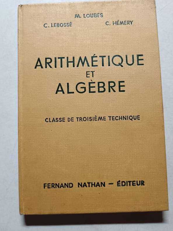 Fernand Nathan Sans date. Manuel scolaire français classique des éditions Fernand Nathan couvrant les bases de l'arithmétique et de l'algèbre probablement destiné au collège ou au lycée dans le système éducatif français des décennies 1960 à 1980