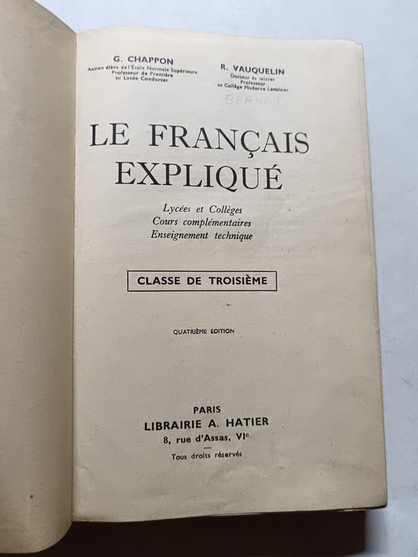 Classification Dewey : 372.6-Livre scolaire : français