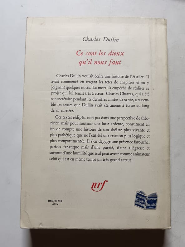 1969 Gallimard, "Pratique du théâtre" 1969 in-8, broché, 316 pp., index. Edition originale, exemplaire du service de presse (pas de grand papier). bon état.