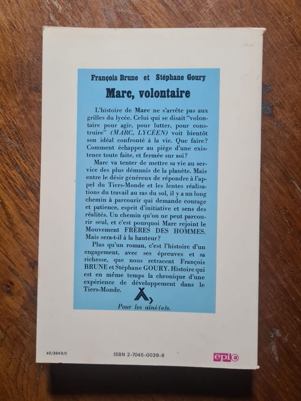 Paris ALSATIA / EPI 1977 In 8 Collection " Le nouveau signe de piste " . Suite de - Marc Lycéen - Pour agir dans le Tiers Monde aux service des hommes , Marc rejoint le mouvement - Fréres des Hommes - il va y rencontrer des difficultés mais aussi des bonheurs . Pour grands adolescents . Enfantina .- 224 p. , 450 gr.
