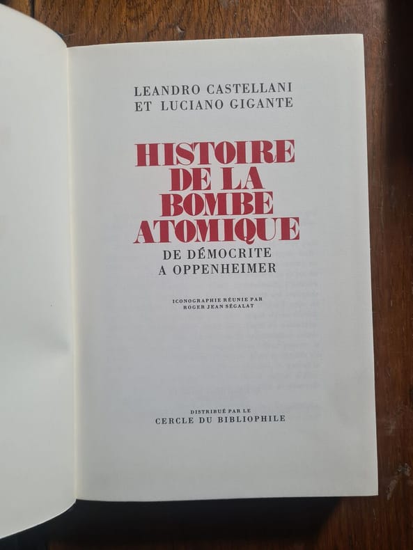 Cercle du Bibliophile Sans date. Ouvrage documentaire retraçant l'histoire de la bombe atomique probablement axé sur son développement scientifique son contexte historique et ses implications géopolitiques publié dans une édition soignée destinée aux bibliophiles