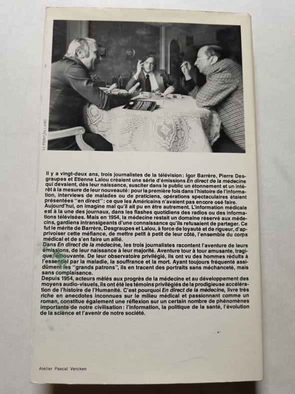 "Trois journalistes de la télévision ont crée une sériei d'émissions ""en direct de la médecine"", qui met en avant les malades, les médecins....C'est l'aventure de cette émission. Classification Dewey : 610-Sciences médicales. Médecine"
