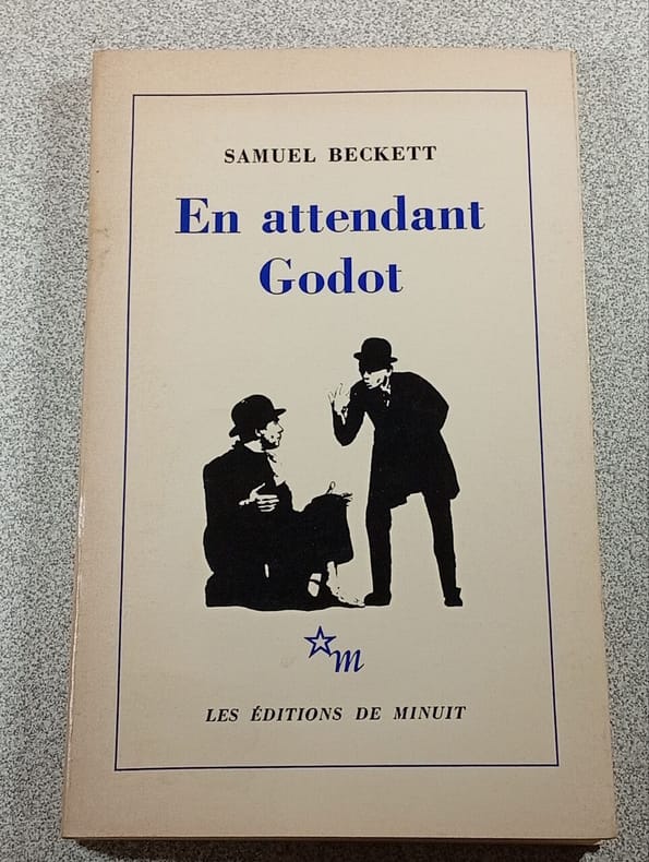Oeuvre la plus célèbre du dramaturge irlandais, elle suscite bien des interrogations et à cet égard, de nombreux livres et articles ont tenté de découvrir qui était Godot. L'une des tentatives d'explications récurrentes est que Godot serait le mélange du mot anglais «God-» (Dieu) et d'un suffixe français populaire «-ot». Cette explication donnerait une dimension métaphysique à la pièce: les deux personnages attendent l'arrivée d'une figure transcendante pour les sauver, mais elle ne vient jamais.«Je ne sais pas plus sur cette pièce que celui qui arrive à la lire avec attention. [...] Je ne sais pas - a déclaré l'auteur - qui est Godot. Je ne sais même pas, surtout pas, s'il existe. [...] Quant à vouloir trouver à tout cela un sens plus large et plus élevé, à emporter après le spectacle, avec le programme et les esquimaux, je suis incapable d'en voir l'intérêt. Mais ce doit être possible.» Vignes, Midnight forever !, 55 (pour l'originale française de 1952). Dos présentant un léger jaunissement ainsi que deux petites coupes. Plats présentant un éclat légèrement altéré. Du reste, belle condition.
