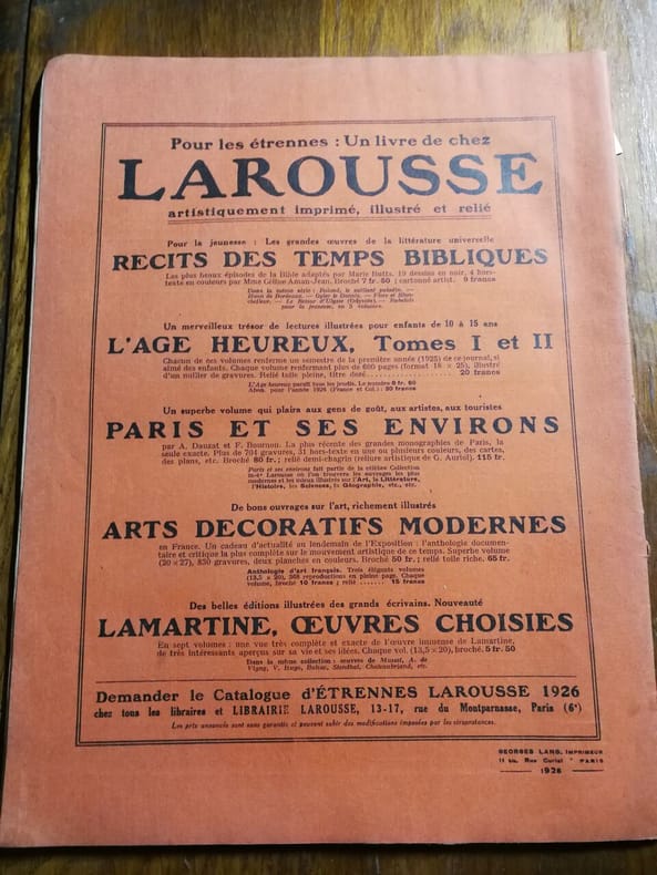 Larousse 1925 in4. 1925. Agrafé.