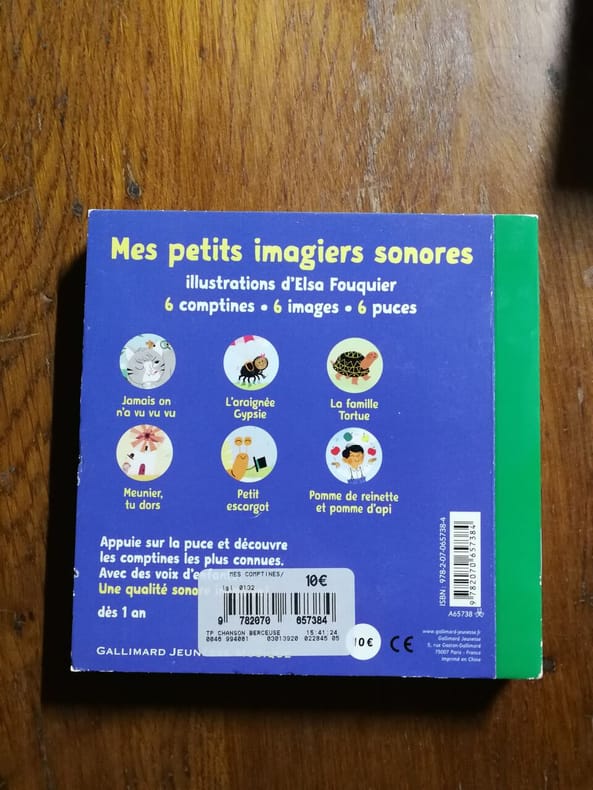 Gallimard. 2016. In-8. Cartonné. Etat d'usage, Coins frottés, Coiffe en tête abîmée, Pliures. non paginé, environ 12 pages cartonnées, nombreuses illustrations en couleur dans le texte - Livre sonore non fonctionnel actuellement - coiffes abimées.. . . . Classification Dewey : 843.0692-Livres d'enfants