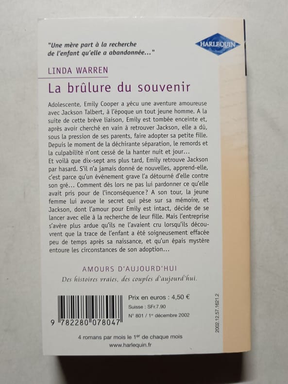 COLLECTION HARLEQUIN SERIE AMOUR D AUJOURD HUI N° 801. 2002. In-12. Broché. Etat d'usage, Couv. légèrement passée, Dos satisfaisant, Intérieur frais. 281 pages.. . . . Classification Dewey : 820-Littératures anglaise et anglo-saxonne