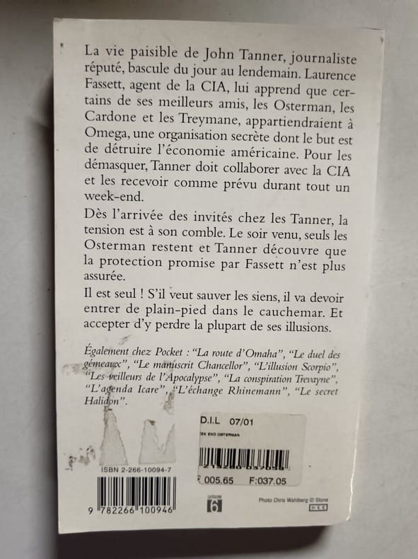 Robert Laffont 1983 278 pages in8. 1983. Cartonné jaquette. 278 pages. John Tanner journaliste de renom habite un village du NewJersey avec son épouse Alice et ses deux enfants. Cette paisible famille s'est liée d'amitié avec les Tremayne les Cardone et les Osterman. Un jour Tanner convoqué par Laurence Fassett responsable de la CIA apprend que ses amis appartiennent à l'organisation subversive Omega: une émanation du KGB dont la mission est de déstabiliser l'économie américaine. Fasset demande à Tanner de l'aider à démasquer les traîtres en les recevant chez lui le week-end suivant comme il l'avait programmé. Entre-temps les suspects sont affolés par des coups de téléphone anonymes et de mystérieux messages. Lorsque tous les invités se retrouvent la tension est à son paroxysme. Mais Tanner s'aperçoit que les agents de la CIA censés le protéger ont disparu. Son cauchemar commence. Paru en 1972 cet angoissant huis clos résume tout l'univers de Ludlum: complot international subtile manipulation violences. Un suspense mené de main de maître! --Claude Mesplède