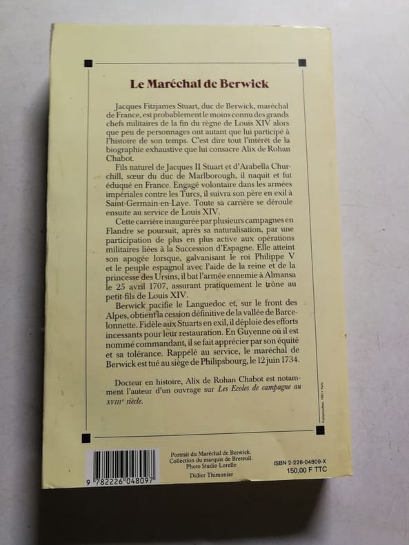 Edition originale publiée par le duc de Fitz-James, son petit-fils, et revue par l'abbé Hook (Brunet 23900) On a longtemps prétendu que le Maréchal de Berwick serait né à Moulins (1670) alors que sa mère revenait d'une cure à Bourbon l'Archambault. Il est le deuxième fils naturel du roi d'Angleterre Jacques II Stuart et d'Arabella Churchill.