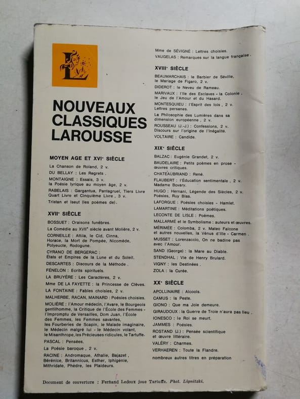 "Molière a trouvé son Tartuffe dans les faits divers de ""France-soir"" / Fernand Ledoux, par P.L. Mignon / Le Tartuffe, de J.-B.P. Molière / L'univers des héros de Molière / Actualité de Molière. Classification Dewey : 792-Théâtre"