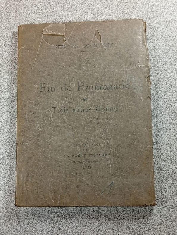 Paris, À l'Enseigne de la Porte Etroite, 1925 ; petit in-16 carré, 52 pp., broché, couverture imprimée. Édition originale, tirée à 650 exemplaires numérotés. Ici, un des 520 exemplaires sur papier vélin d'Arches. Remy de Gourmont a été un écrivain et critique littéraire très brillant, ami de Villiers De l'Isle Adam, Huysmans, Mallarmé et Mirbeau. Défiguré par un lupus, il reste cloîtré chez lui à écrire et ne sort de chez lui que pour se rendre chez son éditeur, le Mercure de France. Bon état.