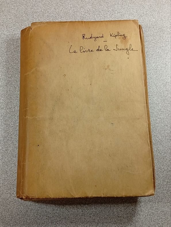 Le Livre de la jungle est un recueil de nouvelles dans la tradition des fables indiennes de Bidpaï, écrit par Rudyard Kipling, écrivain britannique, lors d’un séjour de quatre années dans le Vermont, aux États-Unis, dans sa maison nommée « Bliss Cottage ». Le second livre de la jungle; Mowgli, l'enfant-loup a été rejeté par le clan des Hommes, il retrouve le peuple de la jungle. Sa victoire sur le tigre Shere Khan, l'implacable ennemi de ses frères l'a fait reconnaître comme le chef incontesté du clan. Pourtant Mowgli a le coeur lourd, parmi ses amis les bêtes, la panthère Bagheera, le serpent Kaa, l'ours Baloo, il se sent devenir un homme... vols reliés, in8, 180x120, demi cuir, tranches de têtes dorées, très bel état intérieur, 286, 356pp. Paris, Mercure de France, 1921 ref/176